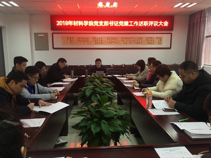 2月26日下午,材料科学与工程学院在崇义楼B306会议室召开2018年度党支部书记述职评议会。会议由学院党委书记朱金波主持,学院各党支部委员参加会议。