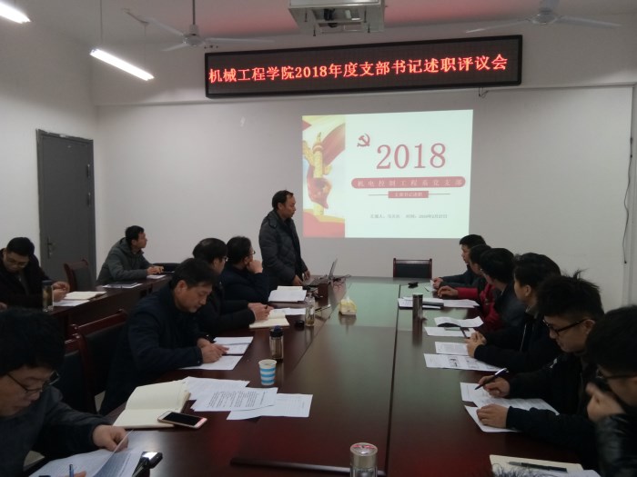 2月27日上午,机械学院在A402会议室召开2018年度支部书记党建述职评议会。校党委党校常务副校长徐其清、学院党政领导班子成员、全体支部书记参加了述职评议。会议由学院党委书记张安宁主持。