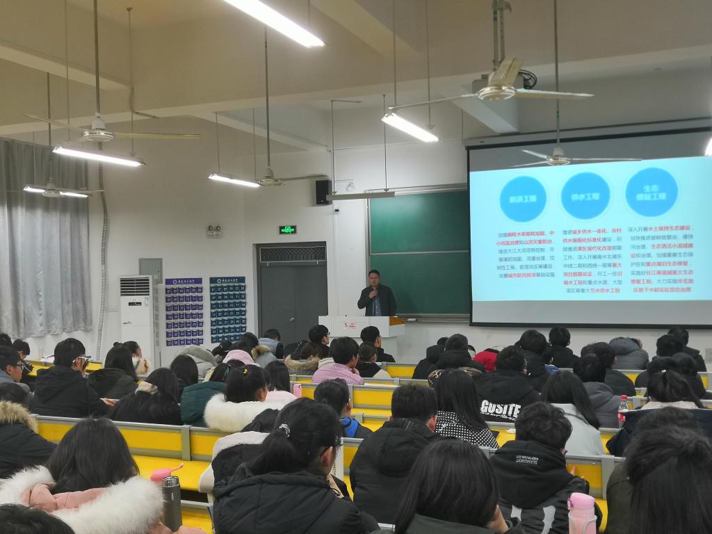 刘国庆依次从学习经历、工作经历、行业发展以及研究领域四个方面向大家阐述自己的学习心得和行业发展动态。他用启蒙、觉悟、独立、成熟、担当等阶段描述了自己本科、硕士以及博士阶段的学习特征,并以自身在南京水利科学研究院的工作经历向大家分享了从学生向社会转变的心得体会,从防洪工程、供水工程和生态修复工程三个方面介绍了专业未来的发展趋势。最后,他向大家展示了近年来自己在专业领域内取得的一系列成果,同时回答了部分同学关于专业学习以及就业方面的疑惑。