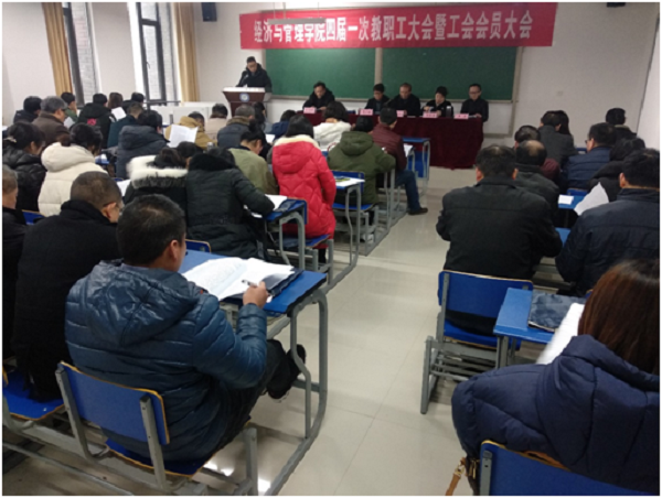 3月1日下午,经济与管理学院在崇信楼东104教室召开四届一次教职工大会暨工会会员大会。校工会主席李广田、学院全体教职工参加了会议。