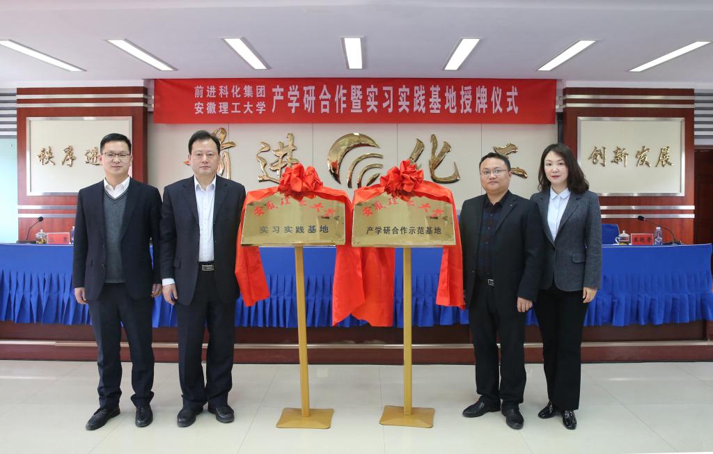 3月20日,化工学院在河南省前进化工科技集团举行产学研合作示范基地暨实习实践基地揭牌仪式。化学工程学院副院长(主持工作)邢宏龙教授和河南前进化工科技集团常务副总经理王北锋共同为产学研合作示范基地、实习实践基地揭牌,并签订了《安徽理工大学化学工程学院教学实践、产学研和就业创业基地合作协议》。