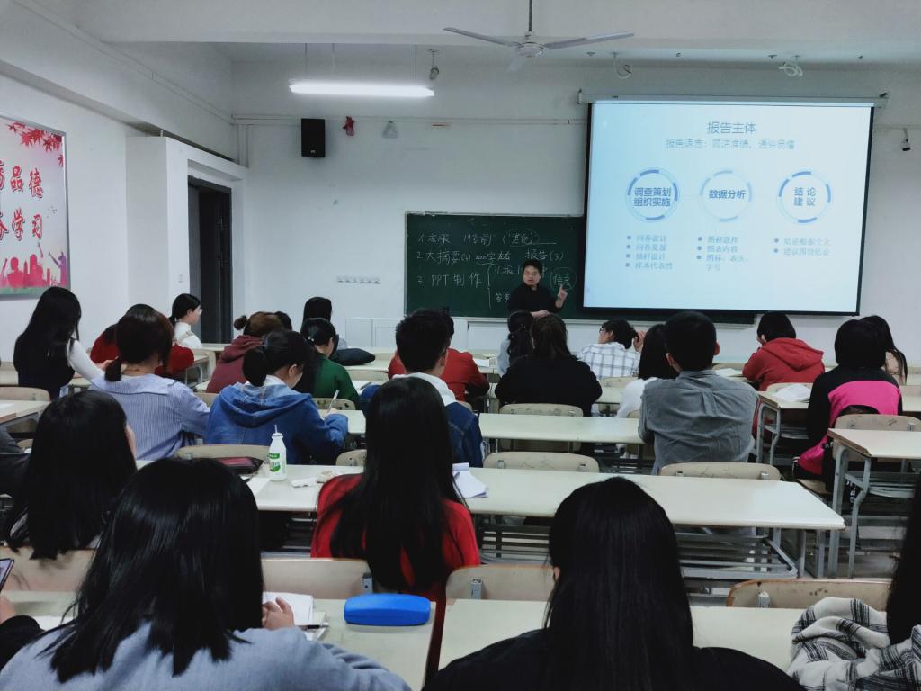 会上,学院苟延峰老师向同学们介绍了“正大杯”第九届全国大学生市场调查与分析大赛赛况,对校赛过程中发现的问题进行了梳理说明,并从报告选题、文献梳理、问题提出、调查策划、调查实施、结论和建议等六大部分对报告主体进行了一一讲解,强调了选题的重要性、时代性和可行性。他告诫参赛师生一定要重视省赛PPT制作、汇报、答辩等细节内容,希望大家认真备赛,力争在省赛中取得优异成绩。