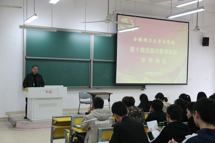 4月13日上午,能源与安全学院和材料科学与工程学院分党校第十期发展对象培训班在明理楼103教室举行开班典礼。能源与安全学院党委书记陈新明、材料科学与工程学院党委副书记范洪喜,学生辅导员、全体2019年党员发展对象参加了本次典礼。