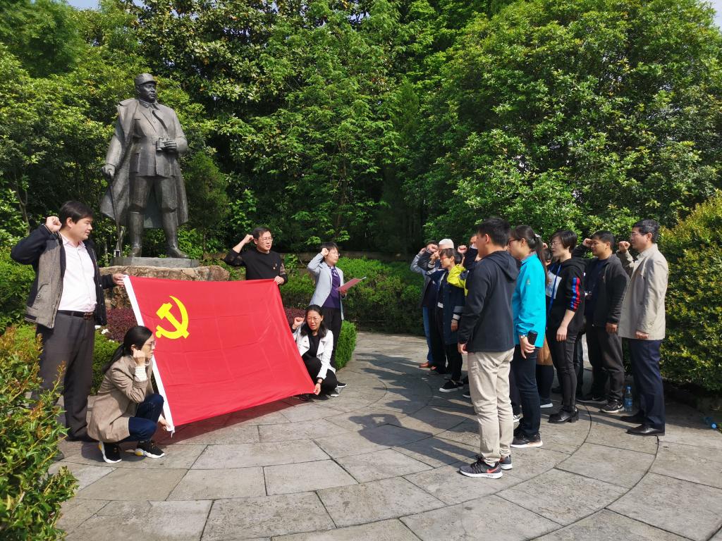随后,全体党员在叶挺铜像前重温入党誓词。