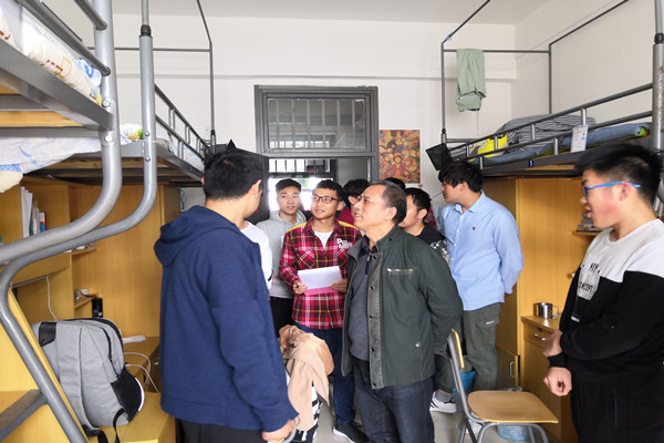 4月29日下午及30日中午,能源与安全学院党委书记陈新明、副书记张向林带队走访学生宿舍,全面开展节前学生宿舍安全卫生大检查,学院全体辅导员参加。
