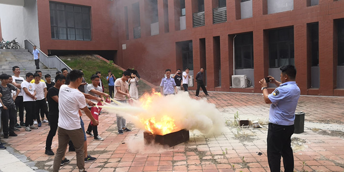会后,学院师生在励行楼内空地进行了消防器材操作演练。