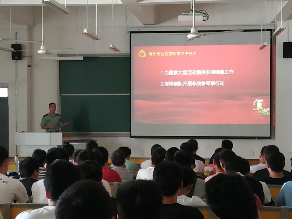 6月3日上午,东部战区工作人员在明理楼101教室针对爆破专业学生开展征兵宣讲会。会议由化学工程学院党委副书记徐泽绵主持。