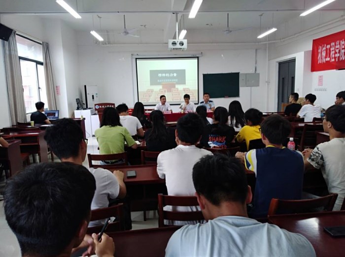 国网淮南供电公司市场及大客户服务室大客户经理兼公司团委委员葛新奥结合自己在工作实际中的案例,与同学们分享了如何在学习和工作中开拓创新,勉励大家要善于发现、勤于思考,重视团队协作,发挥集体智慧。