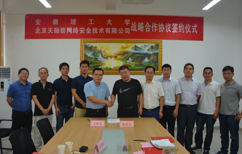 会上,双方签署了《安徽理工大学计算机学院与北京天融信网络安全技术有限公司战略合作协议书》。