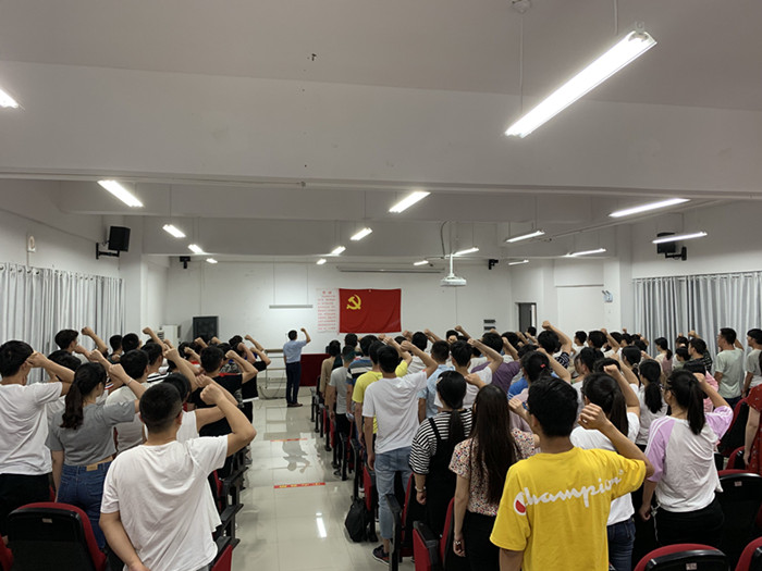 6月5日下午,电信学院在励行楼B112报告厅举办毕业生党员重温入党誓词活动。学院党委书记夏邦权参加活动并为毕业生党员讲党课。