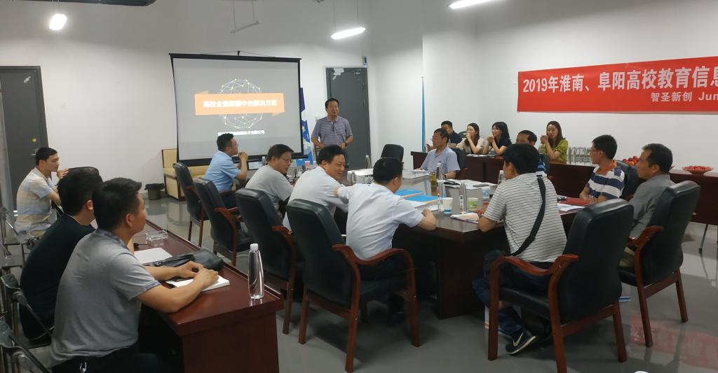 6月14日下午,淮南、阜阳地区高校教育信息化交流研讨会在我校至善书院六楼举办。来自阜阳师范大学、阜阳职业技术学院、淮南师范学院、淮南联合大学等6家高校网络信息中心负责人和多家教育信息化领域服务商参加了本次研讨会。会议由现代教育技术中心主任王一兵主持。