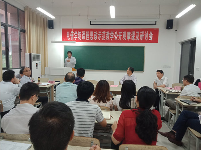 为进一步发挥课堂教学的育人主渠道作用,贯彻落实《安徽理工大学高水平本科教育教学建设实施办法(试行)》、全面推进学院“课程思政”教学改革和全员全程全方位育人,6月17日下午,电气与信息工程学院在励行楼C103教室举办课程思政示范教学公开观摩课及研讨会。校党委常委、副校长董雨受邀到会指导。校党委宣传部部长娄志勇,校教务处处长黄友锐,人文社会科学学院院长谢振安,马克思主义学院院长孙功等一同受邀参加研讨会。会议由学院执行院长周孟然教授主持。