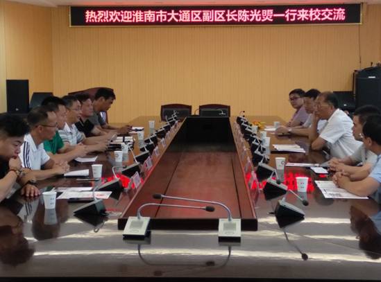 6月28日下午,淮南市大通区副区长陈光煚带领大通区教育局、黄山中学校长等一行来我校体育部调研。体育部党总支书记、主任杨斌,副主任邹瑞等在舜耕苑二楼会议室会见了来访客人。