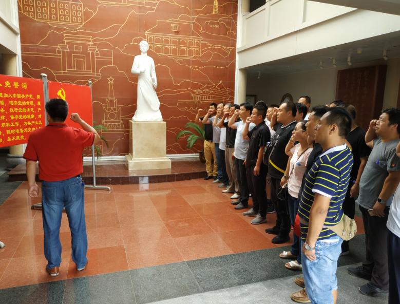 在王稼祥故居纪念馆,全体党员瞻仰了王稼祥同志生平事迹,回顾党践行群众路线的光辉历史,缅怀王稼祥同志和老一辈革命家为中国革命和建设事业做出的卓越贡献,并在王稼祥雕像前庄严重温入党誓词。