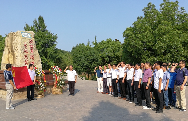 全体党员首先参观了新四军纪念林陈列馆,瞻仰了革命先烈的遗像和珍贵文物,共同感悟革命先辈们为理想而艰苦奋斗的革命精神。随后,大家来到纪念林,认真阅读着主路两边的碑文和题词,深入了解新四军的光辉历史,对英烈们的光辉事迹产生了深深的敬意。在“新四军精神永放光芒”的纪念石碑前,党员们面对党旗重温了入党誓词。