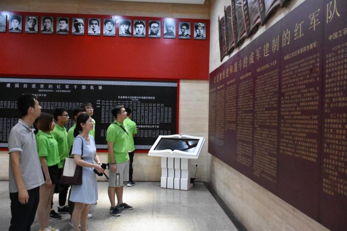 师生们怀着崇高敬意和无限哀思先后参观了金寨县革命博物馆、洪学智将军纪念馆、红军纪念堂、金寨烈士墓园、烈士纪念塔,详细了解将士们英勇无畏、为革命献身的光辉事迹。一座座烈士雕像、一幅幅历史画面、一件件先烈遗物再现了红军战士们为了革命胜利奋力搏杀、勇往直前的场景。烈士们为了人民福祉无所畏惧、公而忘私的革命精神感动、鼓舞着在场每一位师生。