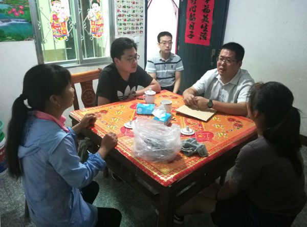 与家访学生和家长深入交谈(摄影:陈孝柱)