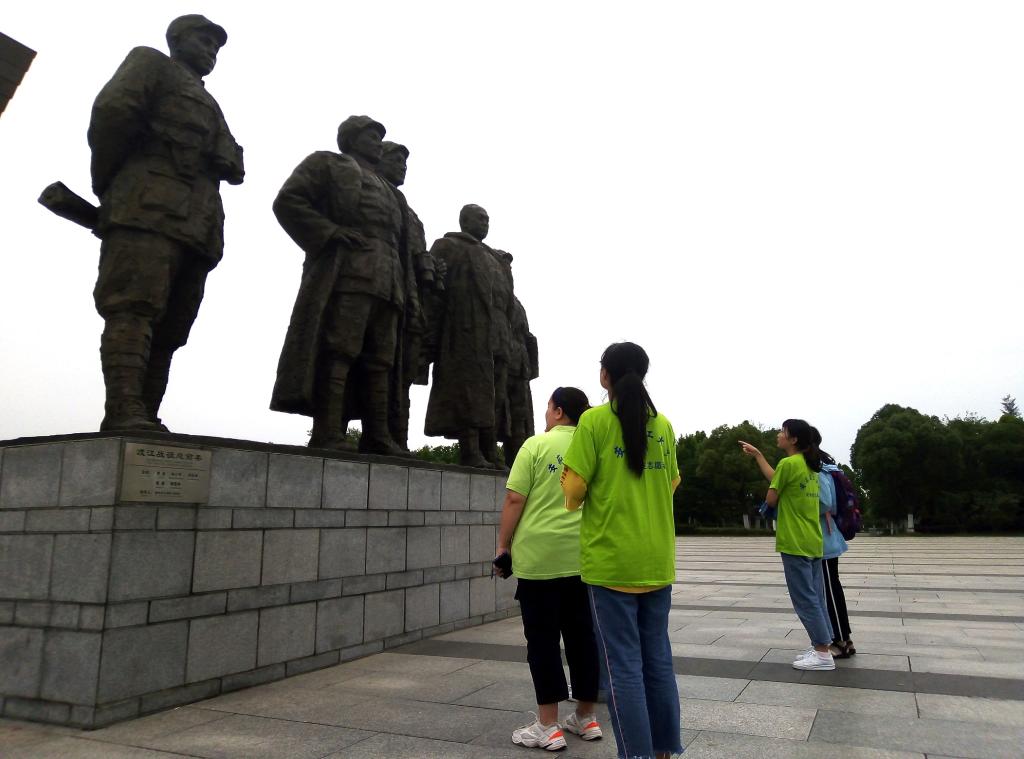 7月14日,实践团江西分队的队员们前往位于南昌八一广场、八一起义纪念馆和江西革命烈士纪念堂,在讲解员的引导下,参观了在历代革命战争中牺牲的25万余名江西籍烈士照片、塑像、遗物等展品,重温了南昌起义、秋收起义等峥嵘岁月,缅怀了以方志敏、刘和珍、伍若兰等为代表的江西革命先烈感人事迹,真切感受到了先烈们为革命事业和人民幸福不屈不挠、英勇献身的崇高精神。队员们还在叶剑英元帅题写的“八一南昌起义纪念塔”前一起唱响《没有共产党就没有新中国》,高呼“祖国万岁”,用嘹亮的歌声和火热的激情庆祝建国70周年华诞,表达了爱国热情,也坚定了勤奋学习、报效祖国的决心。队员戚鹏坤说“利用暑期,思政课老师带领我们大学生开展的这次课题调研社会实践活动,有助于拓展我们的历史视野,把红色资源优势转化为理想信念教育鲜活教材,增强高校思政课的思想性、理论性和亲和力、针对性。江西是‘中国革命的摇篮’、‘人民军队的摇篮’、‘共和国的摇篮’、‘伟大长征出发地’,红色资源丰富,希望今后有更多的同学到江西井冈山、瑞金、于都等地接受革命传统教育,发扬红色传统,传承红色基因,增强爱国之情。”