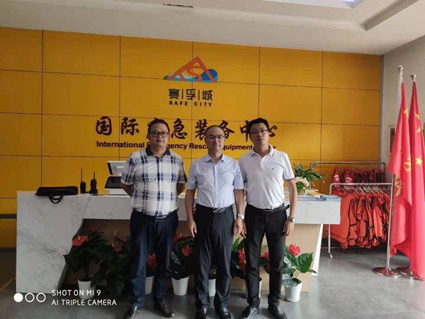 周孟然与企业国际研究总院院长李文国(右一)和我校96级自动化校友高应利(左一)合影(照片由企业提供)