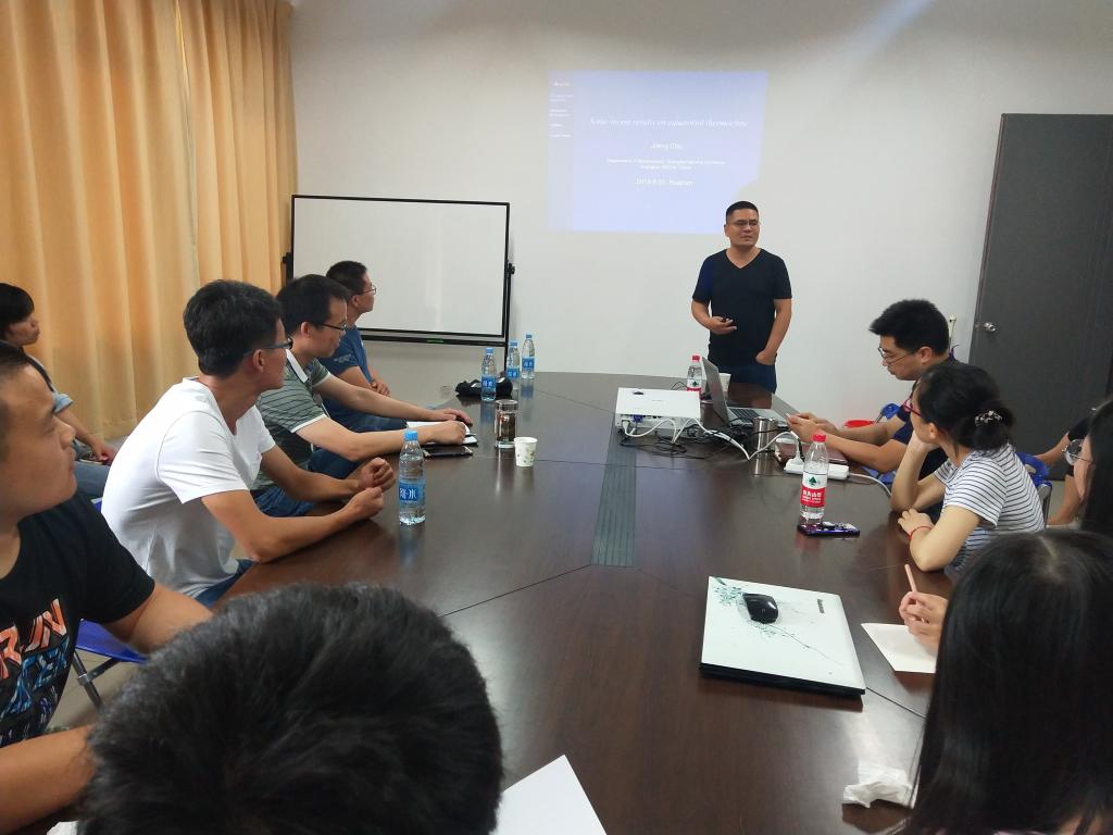 储继峰教授首先介绍了赤道温跃层等水波方面的相关概念以及描述水波的欧拉方程,详细介绍了其团队关于水波方程局部分岔解的存在性和稳定性的最新结果。最后,储教授与青年教师和研究生就相关学术问题进行了热烈交流和深入讨论。他还建议青年教师和研究生们要勇于提出问题,并带着这些问题和相关领域的知名专家学者积极进行交流学习。