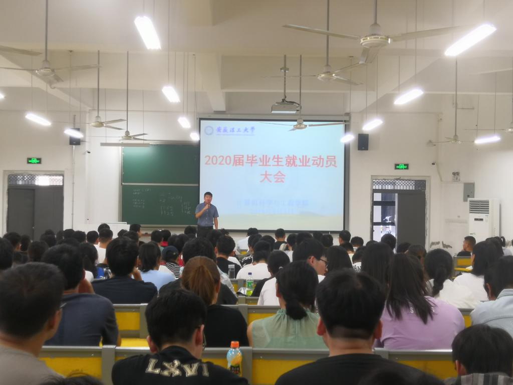 9月4日下午,计算机学院在明理101教室和明理102教室分别召开2020届毕业生就业动员大会。院党委副书记兼行政副院长张旸、教学副院长方贤进、毕业班辅导员和2020届毕业生参加了动员会。