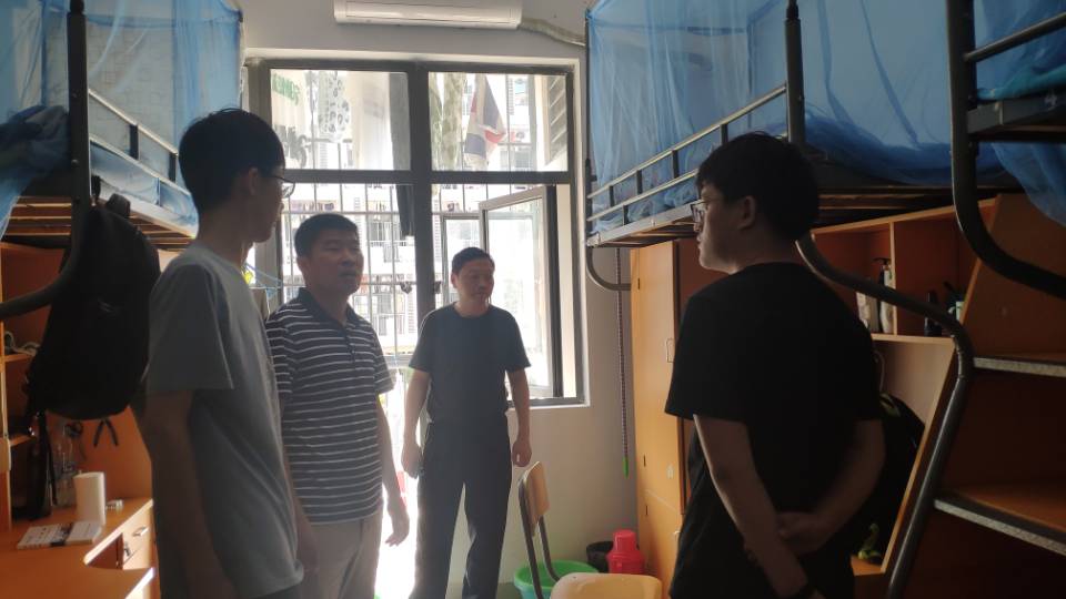 为了解学院新生住宿和生活情况,引领新生尽快适应新生活新环境,感受到学院浓浓的温情,9月6日上午,计算机学院党委书记王永祥,党委副书记兼行政副院长张旸,19级辅导员赵威、崔文豪一行前往信苑宿舍楼慰问2019级新生并检查内务。