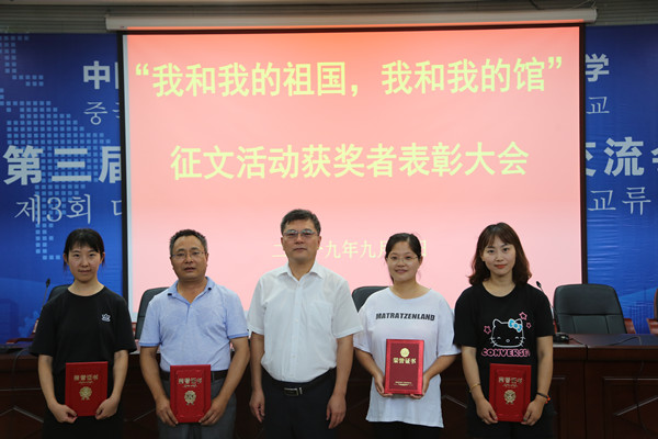 9月8日上午,图书馆在三楼报告厅举行“我和我的祖国,我和我的馆”主题征文颁奖活动。图书馆馆长陈明强、副馆长程少武等出席会议并为受到表彰的职工颁奖。图书馆全体职工参加了表彰大会。