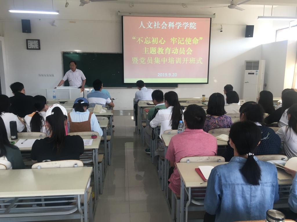 9月20日下午,人文学院在崇智楼A331教室召开“不忘初心、牢记使命”主题教育部署会,学习传达学校“不忘初心、牢记使命”主题教育实施方案和校党委书记郭永存在学校主题教育部署会议上的讲话,动员部署学院“不忘初心、牢记使命”主题教育。会议由学院党总支书记吴云平主持。学院党政领导出席会议,全体师生党员参加了部署会。