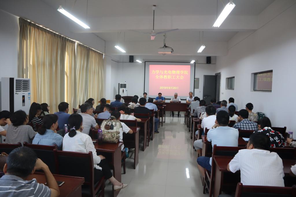 为贯彻落实学校统一部署的“不忘初心、牢记使命”主题教育的会议精神,9月20日下午,力物学院召开“不忘初心、牢记使命”主题教育动员部署会议。会议由学院党委书记石秀光主持,学院党委领导班子、全体党员参加了动员大会。