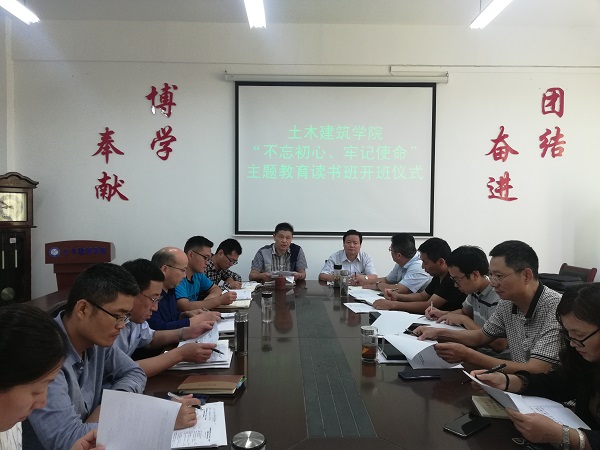 9月27日上午,土木建筑学院党委在求是楼南225会议室举行“不忘初心、牢记使命”主题教育读书班开班仪式。学院党委副书记、院长马芹永主持开班式。院党委中心组成员、各党支部书记参加开班式。