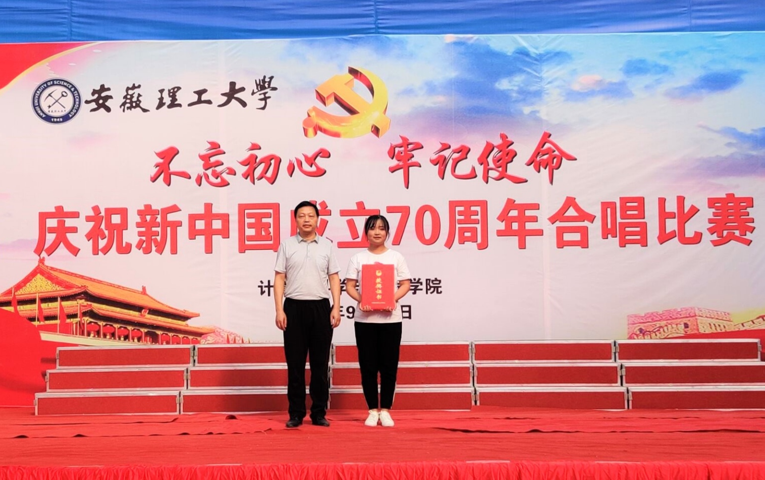 比赛在校歌——《大学无疆》的合唱声中拉开序幕,学生情绪高昂,精神饱满,着装整齐,高亢嘹亮的歌声、激动自信的表情、精彩纷呈的表演形式等给评委和观众留下了深刻的印象。台下掌声和欢呼声不断,一首《我和我的祖国》将比赛推向高潮。经过激励角逐,最终数字媒体2019-1班荣获一等奖;计算机2019-4班和软件工程2019-3班获得二等奖;物联网工程2019-1班等4个班级获得三等奖;物联网工程2019-2班等6个班级获得优秀奖。