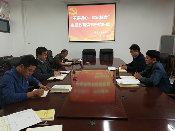 10月9日下午,能源与安全学院党委在宁远楼A406会议室举办了“不忘初心、牢记使命”主题教育专题党课暨读书班结业式。学院党委书记陈新明主持并讲党课,学院党委委员及办公室支部党员参加了会议。