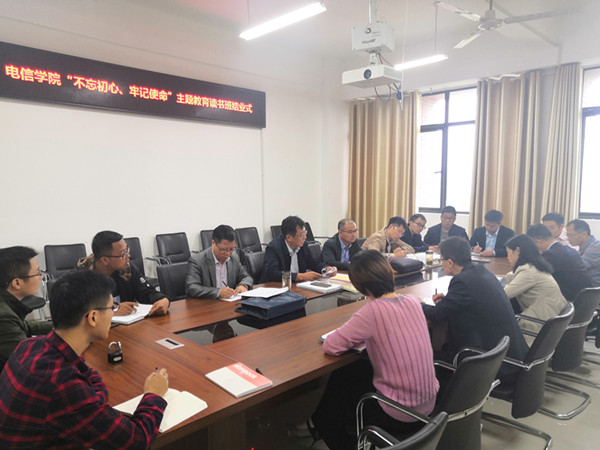 电信学院“不忘初心、牢记使命”主题教育读书班于9月22日开班,历时半个月,涵盖10次集中学习研讨,学习方式涵盖成员自学、集中理论学习、集中观看视频、《我们走在大路上》“影评会”、集中研讨等。读书班期间,学院党委集中学习与调研、“边学边查边改”相互融合,和学院发展实际结合,确保了学习效果。