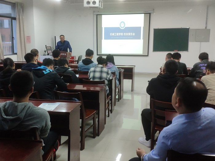 10月15日下午,机械学院在励学楼B403报告厅举办校友报告会。报告会由安徽昊方机电股份有限公司研发部负责人、2014届机械工程专业校友陈凯主讲。报告会由学院党委副书记程秀霞主持。学院2020届本科毕业生代表和毕业班辅导员听取报告会。
