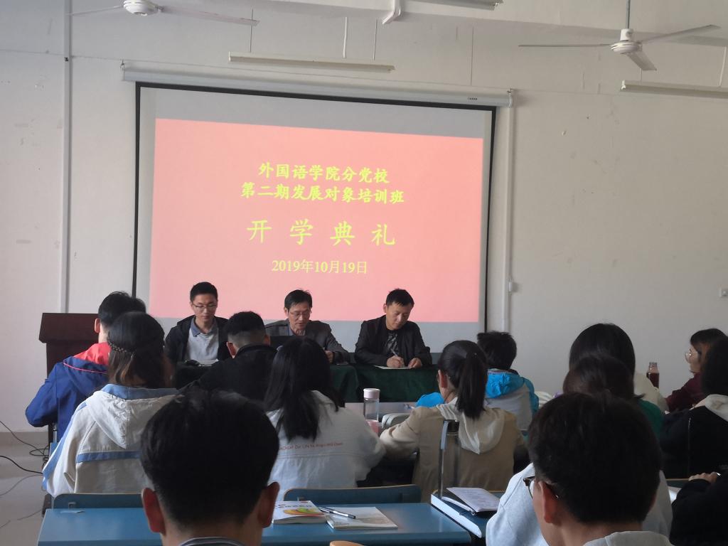 10月19日上午,外国语学院分党校在崇智楼B233举办第二期党员发展对象培训班开学典礼。学院党委书记张宣传主持会议并讲话。院党委副书记彭晶出席会议。