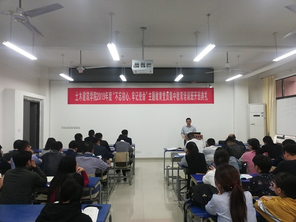 为深入开展“不忘初心、牢记使命”主题教育,推进基层党组织标准化建设,进一步加强学院党员教育工作,10月23日下午,土木建筑学院2019年度“不忘初心、牢记使命”主题教育党员教育培训班在求是楼南227教室开班。学院党委副书记、副院长(主持工作)庞建勇教授主持开班典礼,学院党政领导班子、学院全体师生党员参加了学习。