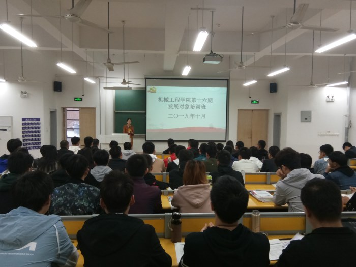 10月26日,机械工程学院在天工203教室举行了第十六期发展对象培训班开班典礼。学院党委副书记、分党校副校长程秀霞出席典礼并讲话。98名学员参加典礼。