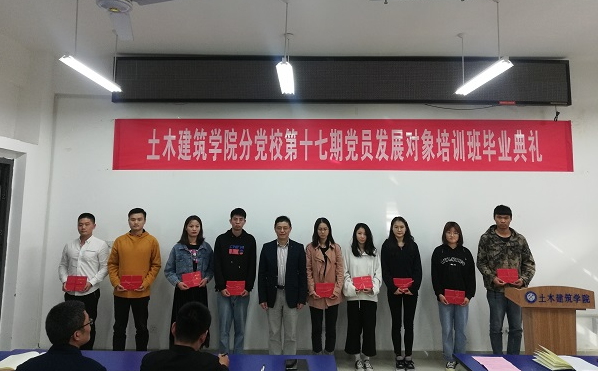 11月1日下午,土木建筑学院分党校在求是楼南227教室举行第十七期党员发展对象培训班毕业典礼。土木建筑学院党委书记、分党校校长徐冬生出席典礼并为学员代表颁发毕业证书。毕业典礼由学院党委副书记赵军主持。培训班班主任、辅导员、培训合格学员160余人参加了毕业典礼。