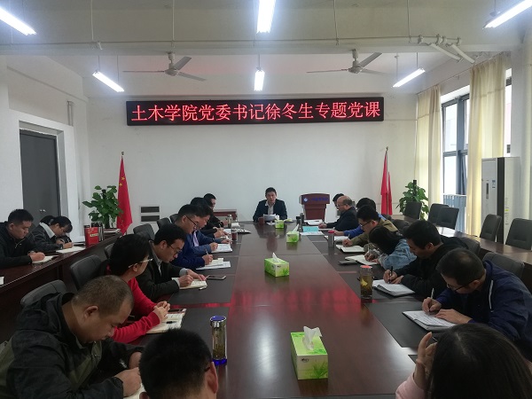 学院党委领导班子庞建勇、赵军、荣传新、吴秉江分别到所在的岩土与地下工程系党支部、学生第四党支部、学生第二党支部为师生党员讲授了专题党课。