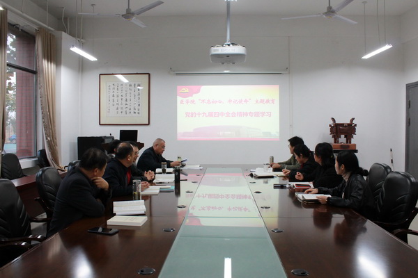 院党委书记刘群红领学了《中共中央关于坚持和完善中国特色社会主义制度推进国家治理体系和治理能力现代化若干重大问题的决定》、全会公报、习近平总书记关于《决定》的说明和中共中央办公厅有关通知精神等。参会人员围绕学习主题,结合工作实际进行了讨论交流。