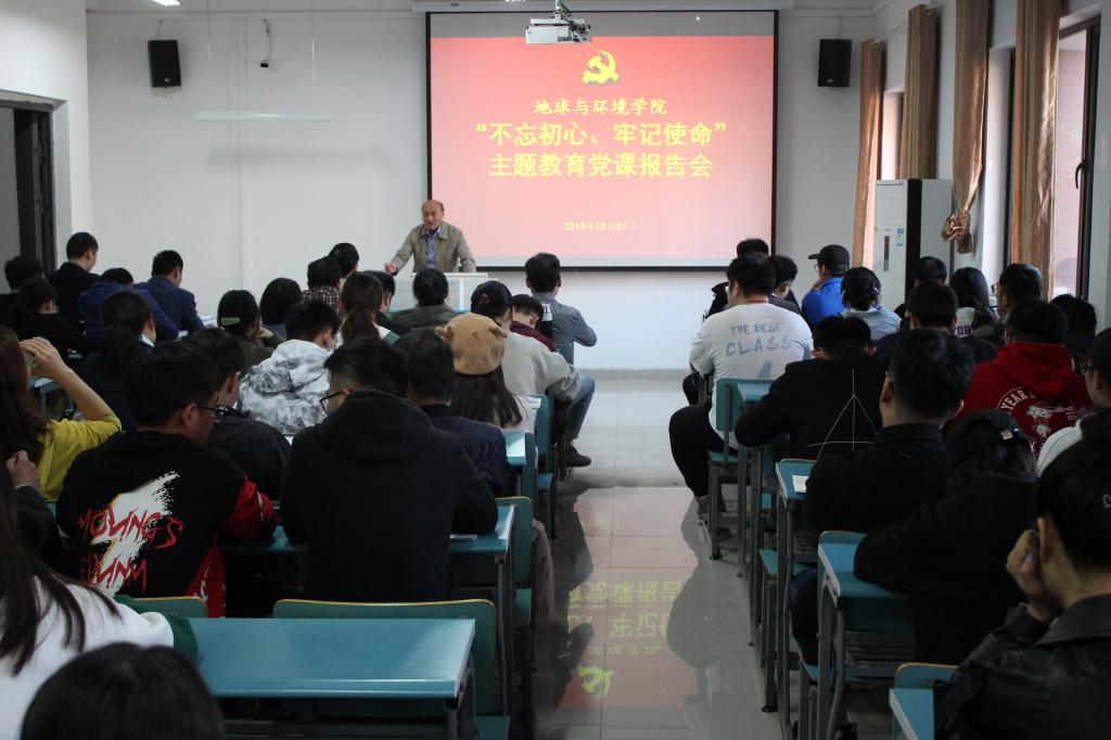 11月1日至12日,地球与环境学院党委领导班子成员分别结合个人学习和调研情况,为学院全体党员、联系党支部党员讲主题教育专题党课。
