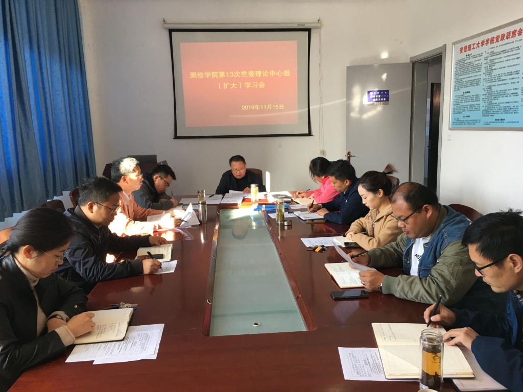 11月15日上午,测绘学院在求本楼南511会议室召开院党委理论中心组(扩大)学习会。会议由党委书记吴军主持,院党委理论中心组成员、系主任、支部书记参加了学习会。