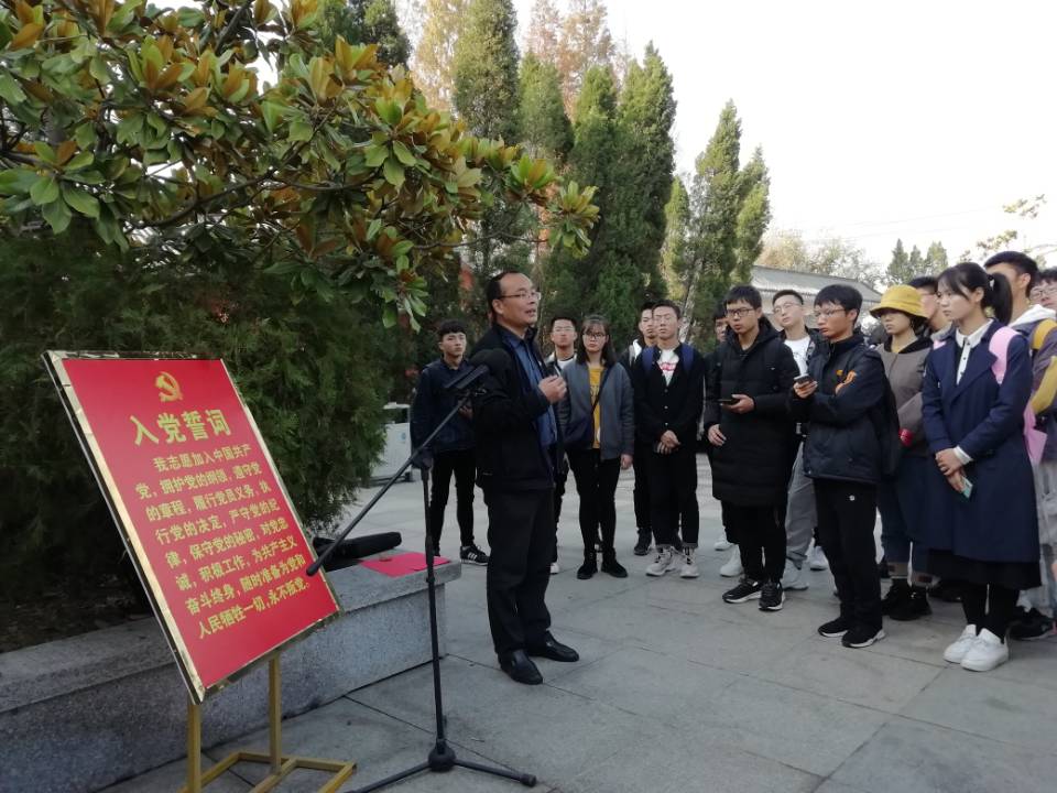 随后,师生们瞻仰了革命烈士纪念塔。在高耸的塔碑下,马克思主义学院“纲要”课教研室的三位党员教师进行了现场教学。他们结合寿县革命烈士的英勇事迹,逐字逐句地解读了入党誓词,让同学们对党的初心和使命有了更加清晰的认识。在教学结束时,师生们还集体诵读了入党誓词。