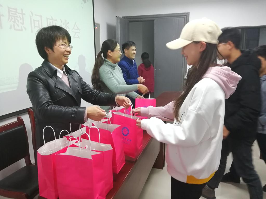 随后,张可佳与各系主任一起为同学们送上了学院精心准备的“考研加油包”,里面有考试所需的文具套装,有牛奶、橙子,寓意着健康与成功,还有毕业班辅导员手写的贺卡,写满了对同学们的真挚祝愿。小小“加油包”里承载着学院对考研学子的满满关怀。应用物理学专业王雨倩同学说,她很庆幸自己选择了考研这条路,考研过程虽然艰辛,但是有学院的支持和同学们的陪伴,已经信心十足。