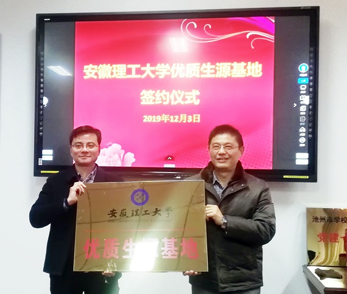双方签订了《安徽理工大学优质生源基地共建协议书》,并共同为基地授牌。