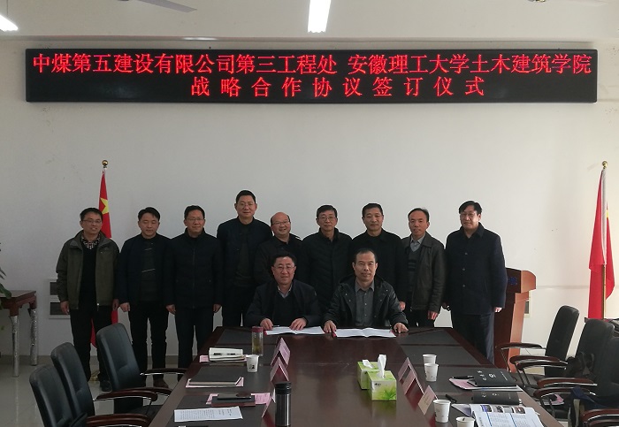 袁兆宽总工程师介绍了中煤第五建设有限公司的基本情况和在矿井建设中存在的技术难题,希望能与学院加强合作,充分发挥中煤五建三处的施工技术优势和学院科研、人才等资源优势,本着“优势互补、互利互惠、双向促进、共同发展”的原则,建立长期稳定的战略合作伙伴关系。
