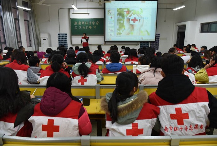 11月30日至12月8日,我校邀请淮南市红十字会来校开展应急救护培训进校园活动。来自全校各级志愿服务组织的师生志愿者200余人参加了培训。