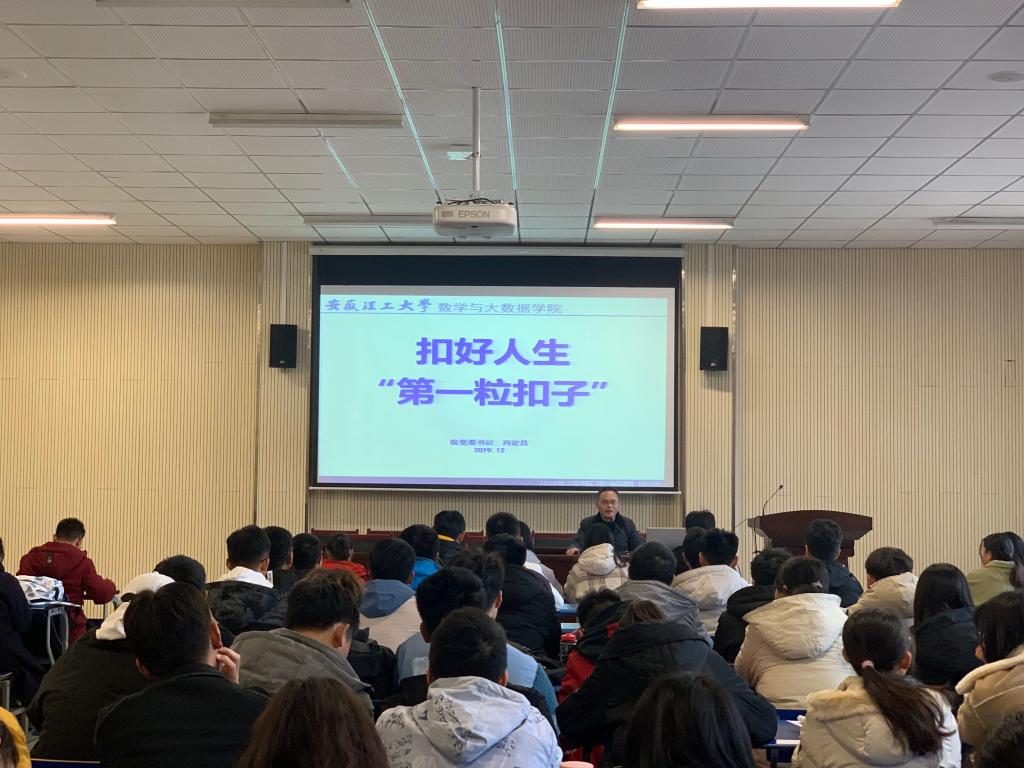 12月12日中午,数学与大数据学院2019年青年马克思主义者培养工程暨学生干部和入党积极分子培训班在明道楼一楼报告厅正式开班。院党委书记冯定昌、党委副书记李勇、各年级辅导员以及新生班主任应邀出席开班仪式。院学生会干事、2019级所有班级学生干部和入党积极分子等122名同学参加了本次培训。