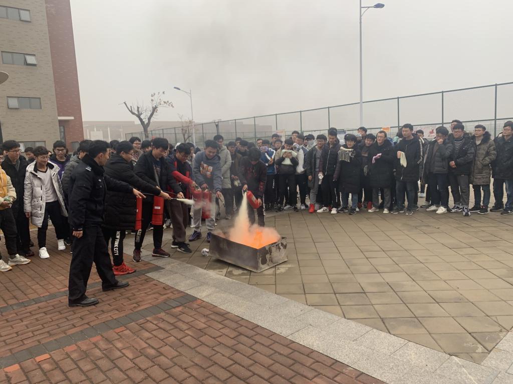 演练现场,随着警报声响起,在疏散引导员的引导下,同学们用湿毛巾捂住嘴巴,快速有序地从宿舍到达应急疏散集合点集结。学校保卫处消防科老师对疏散演习进行了点评,并列举了近期在其它高校内发生的多起火灾事故,希望同学们严格遵守学校宿舍管理规定,加强冬季消防安全知识学习。最后,老师为同学们讲解了灭火器的使用方法,同学们动手操作灭火器进行了灭火演练。