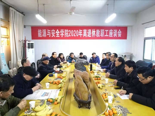 1月14日下午,能源与安全学院召开2020年离退休教师座谈会。12位离退休教师代表、学院党政领导班子、系主任参加了会议。会议由学院党委书记华心祝主持。